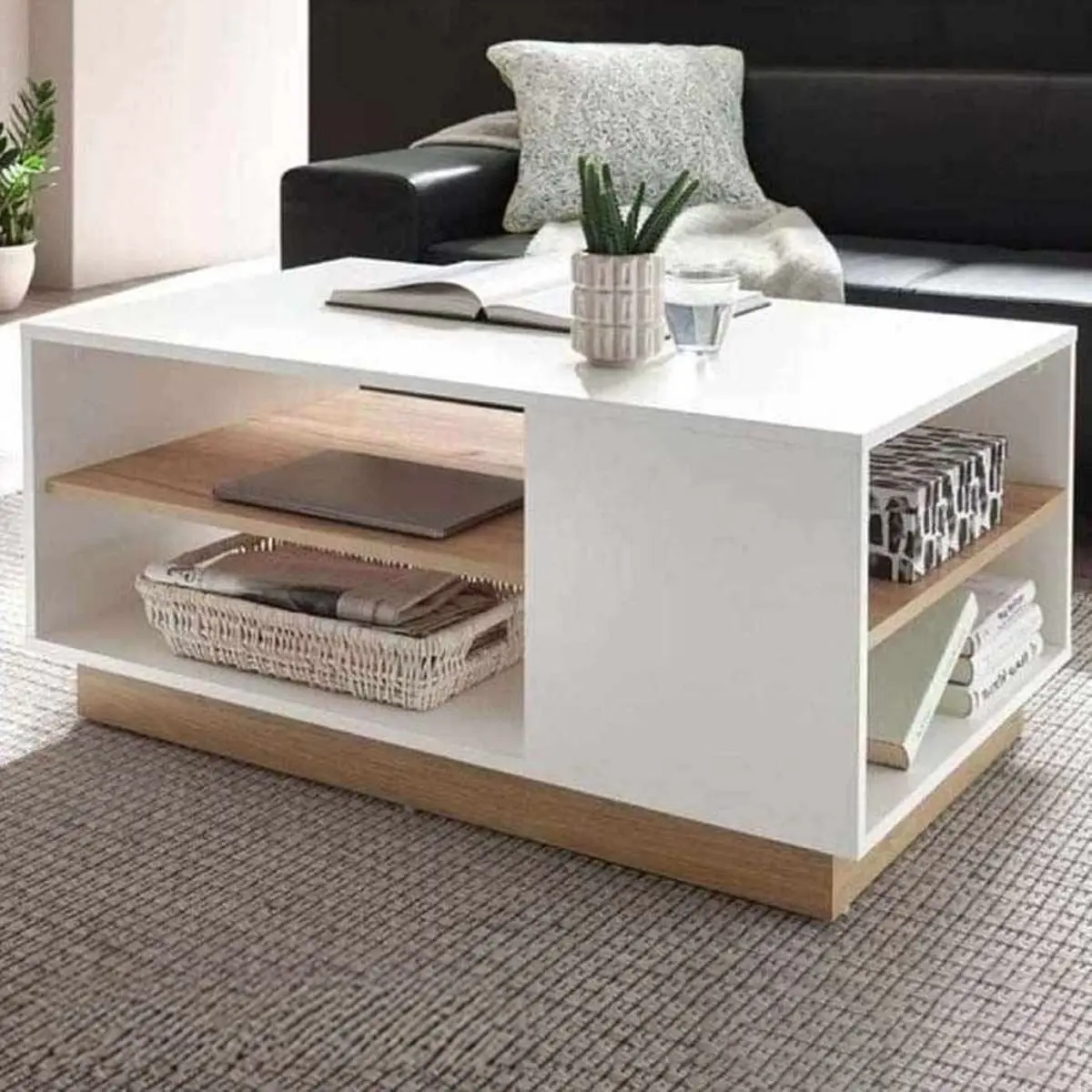ترابيزة قهوة خشب ام دى اف أسباني وبى فى سى أبيض – 50×90×42 سم