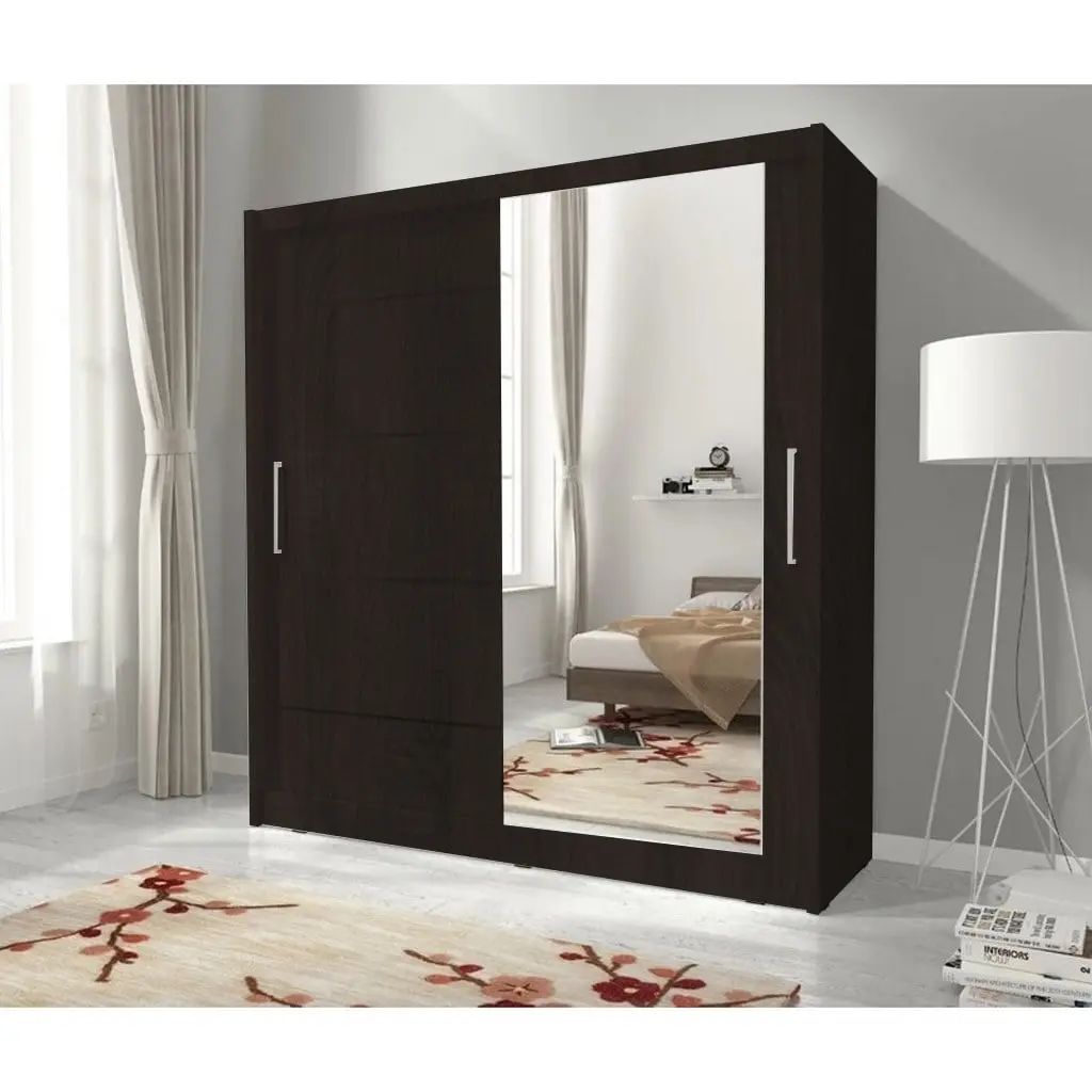 دولاب خشب ام دي اف ضلفتين رمادي و أبيض - 190×140×50 سم