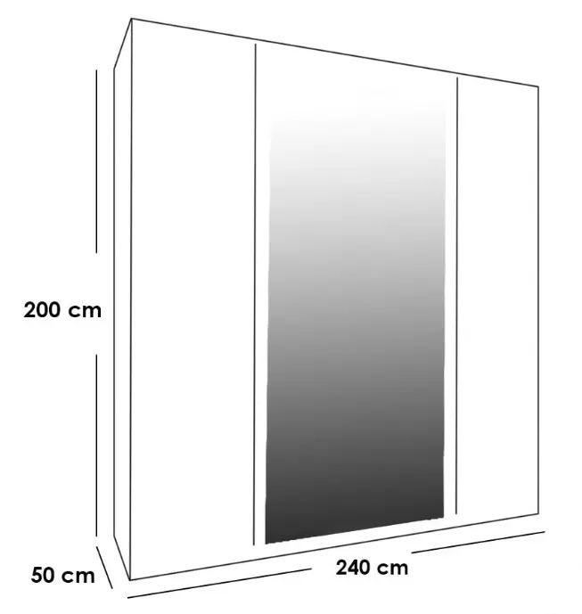 دولاب خشب إتحاد أوروبي 3 ضلفة مع مرآة ابيض – 240×200×50 سم