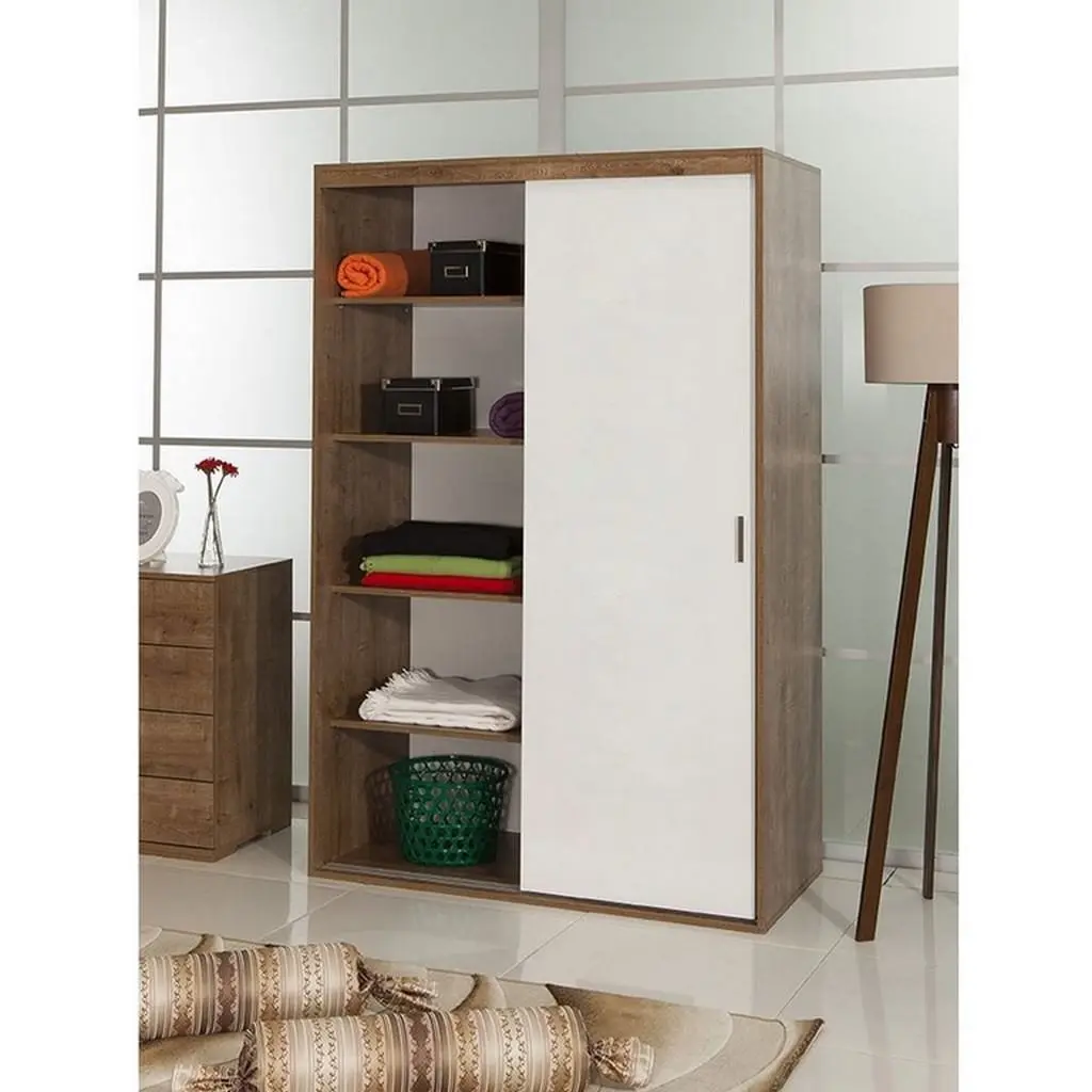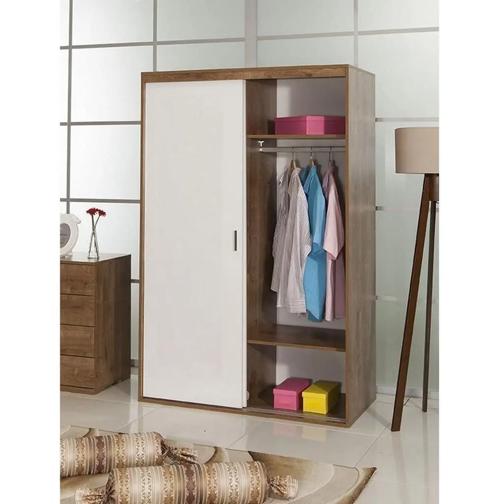 دولاب خشب ام دي اف ضلفتين أبيض و بني – 183×100×50 سم