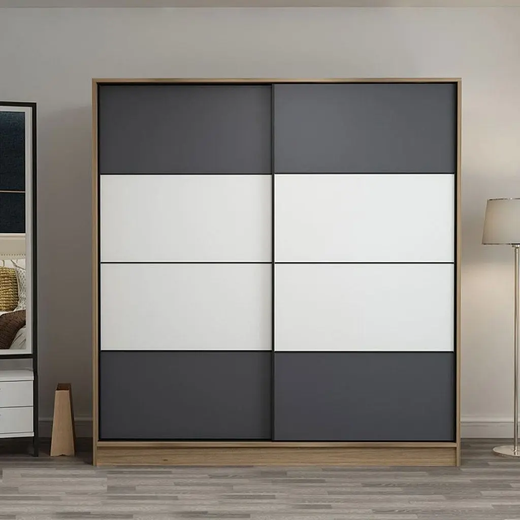 دولاب خشب ام دي اف ضلفتين رمادي و أبيض – 190×140×50 سم