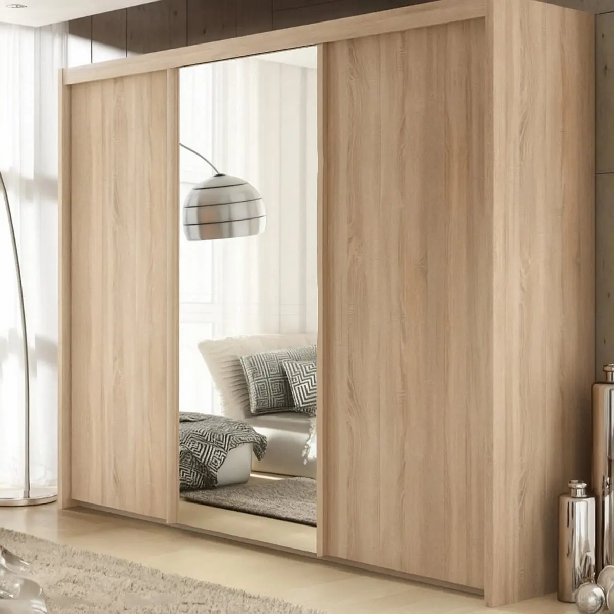 دولاب مع مرايا 3 ضلفة خشب إتحاد أوروبي بيج – 240×200×50 سم