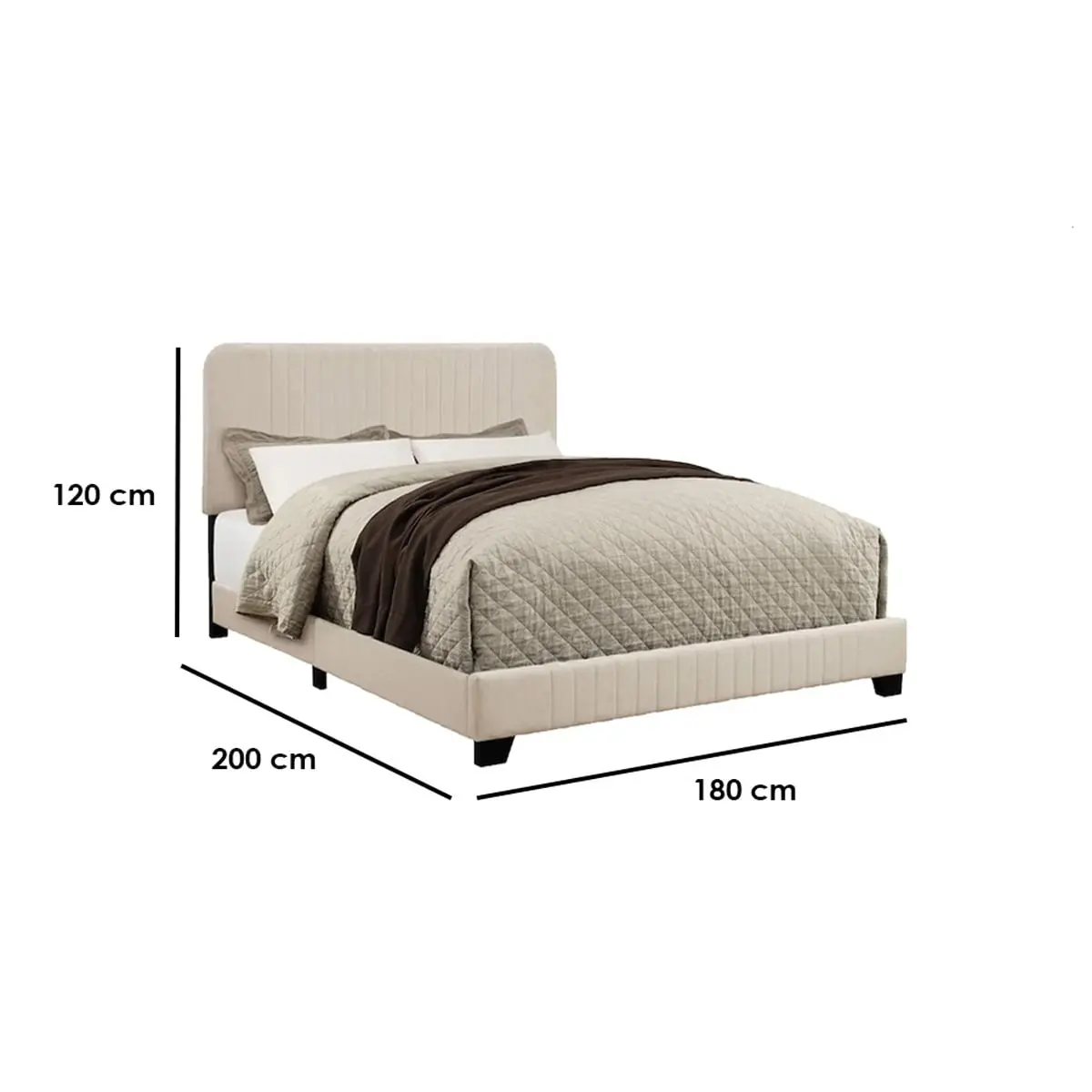 سرير سوبر كينج خشب زان احمر و قطيفه 120×180×200سم – بيج