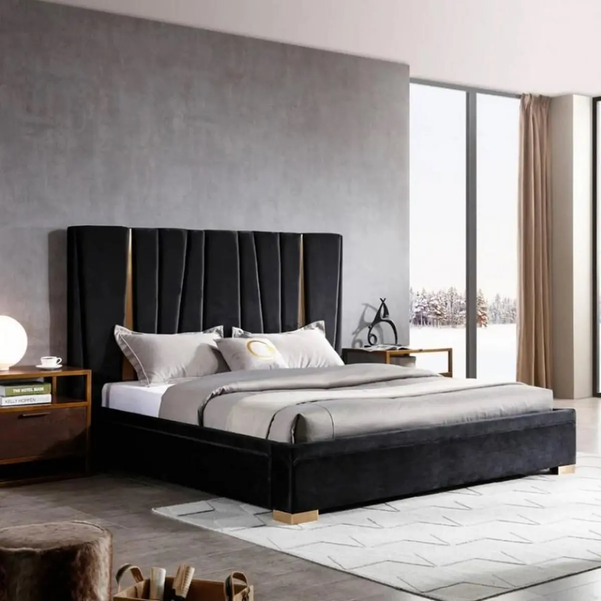 سرير سوبر كينج خشب كونتر و قماش قطيفة روك اسود – 183 × 205 × 120 سم