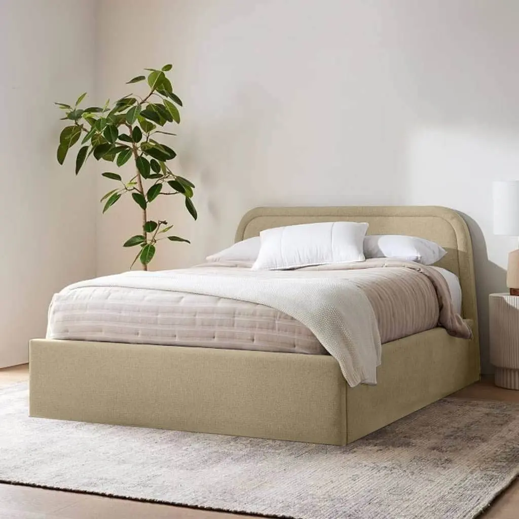 سرير سوبر كينج خشب زان احمر و قطيفه 120×180×200سم - بيج