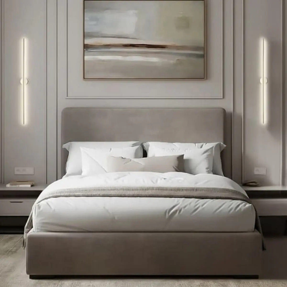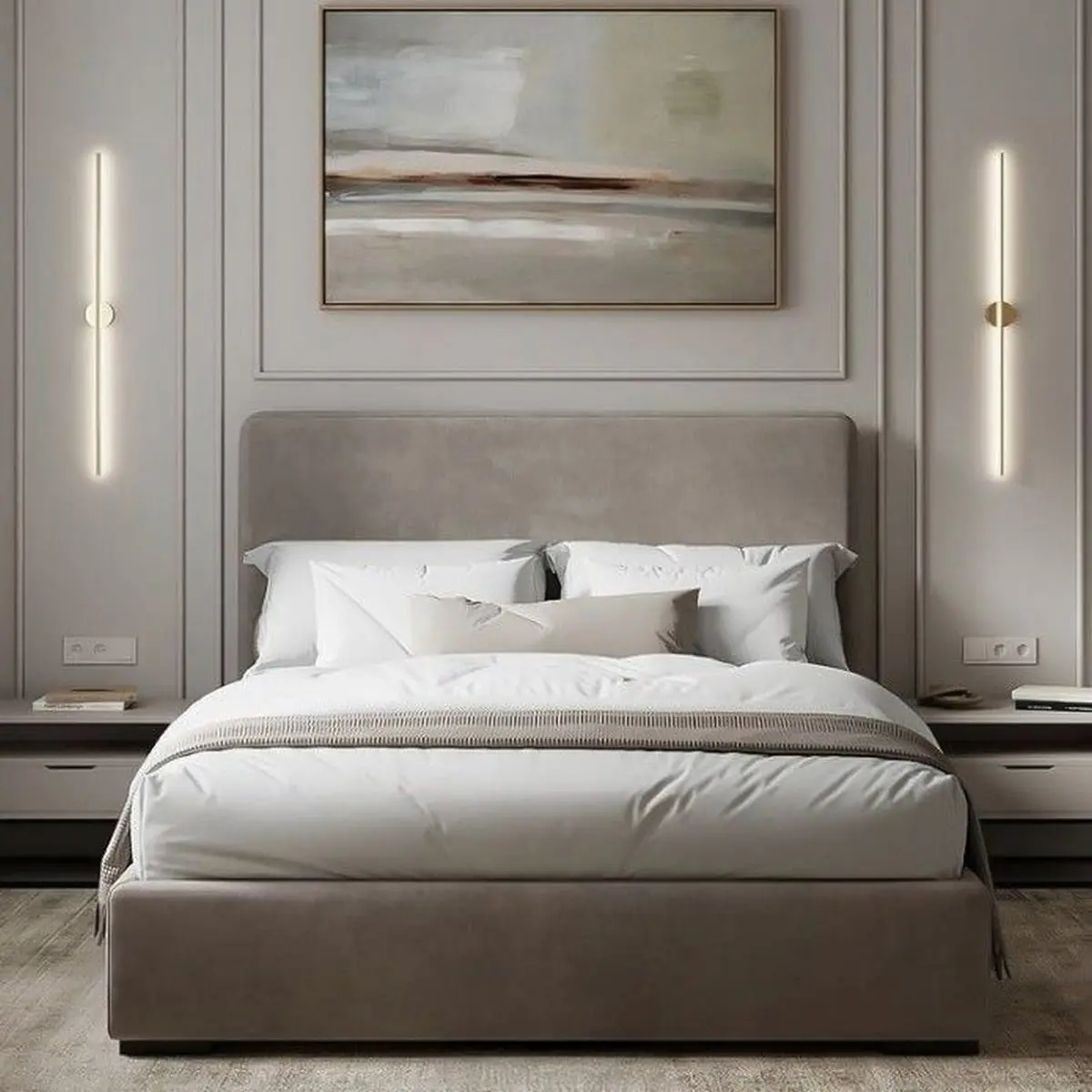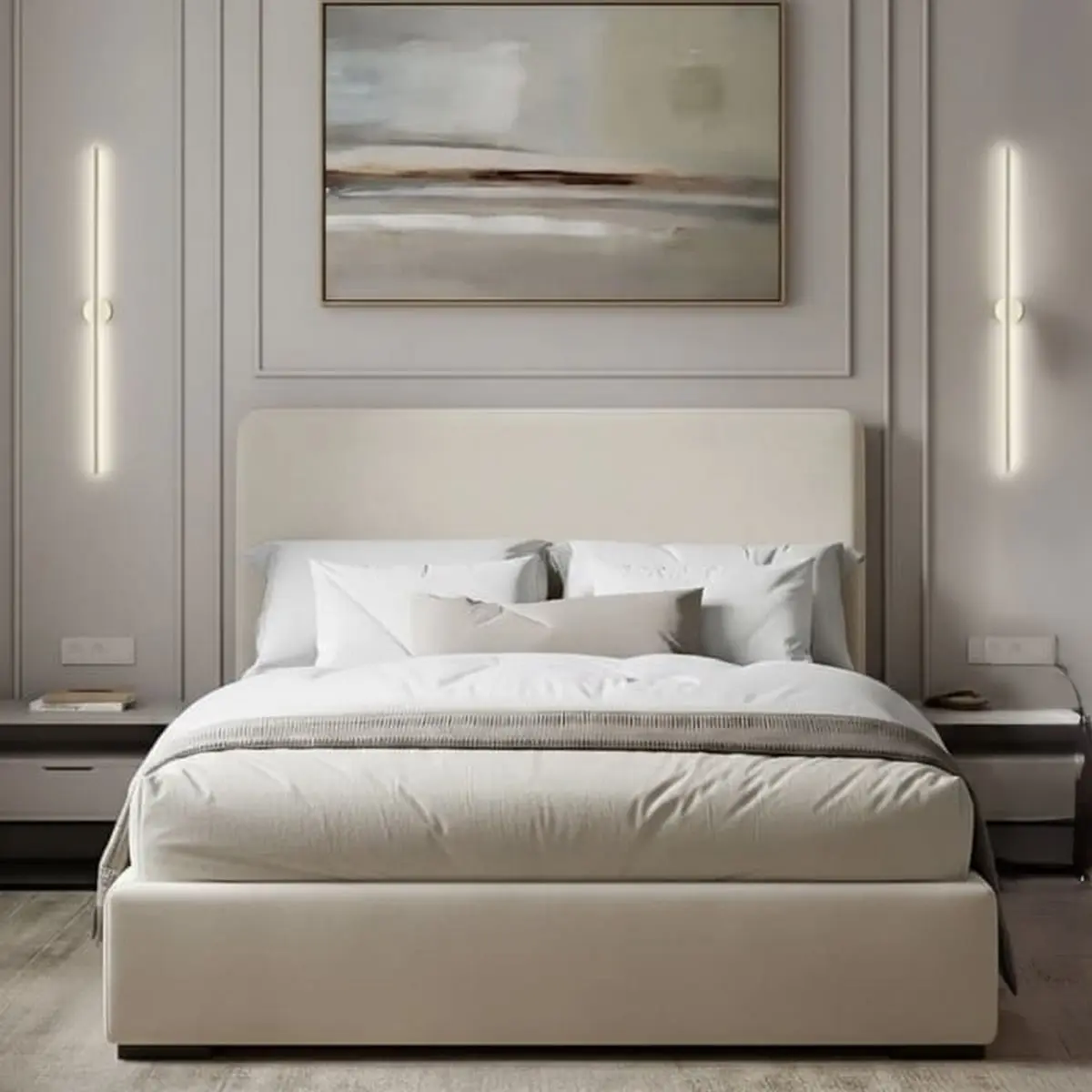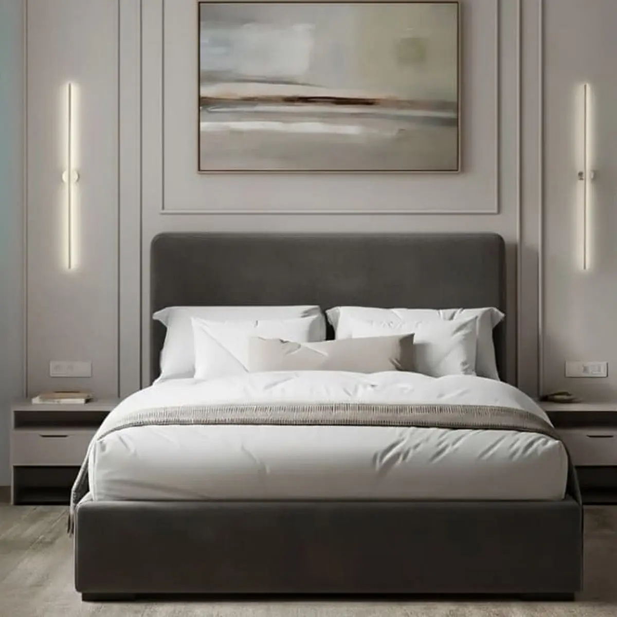 سرير كوين خشب موسكي و قطيفة هامر رمادي فاتح – 140×120×200 سم