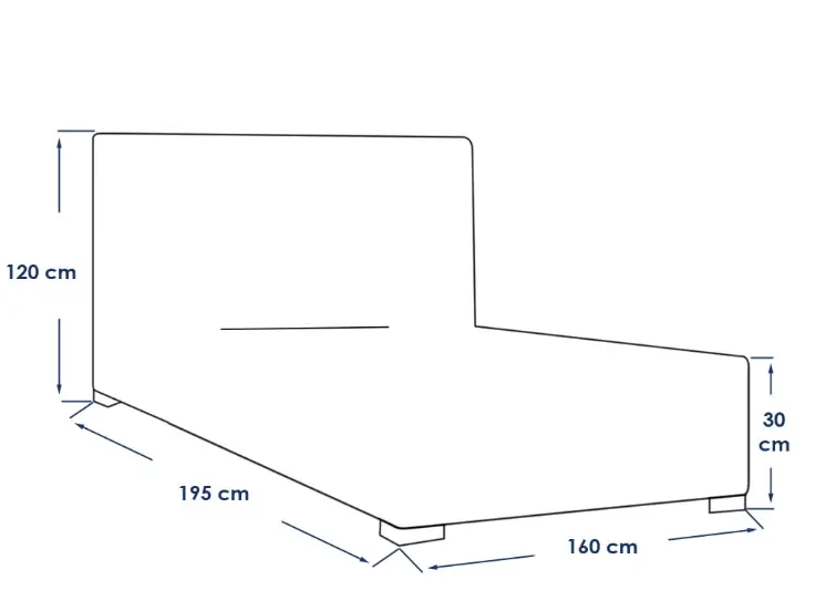 سرير فردي خشب موسكي و قماش قطيفة ازرق - 200×100×120 سم