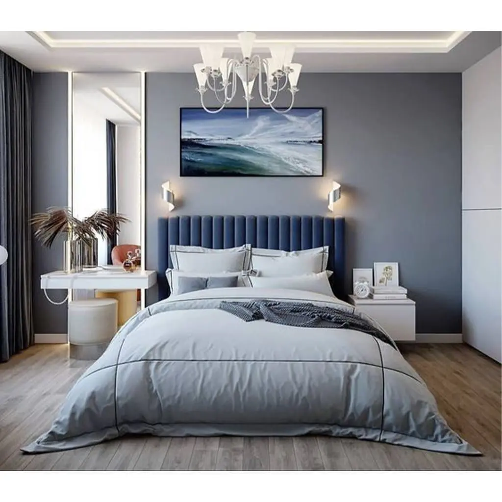 سرير كينج خشب زان 160×200×120 سم – كحلي