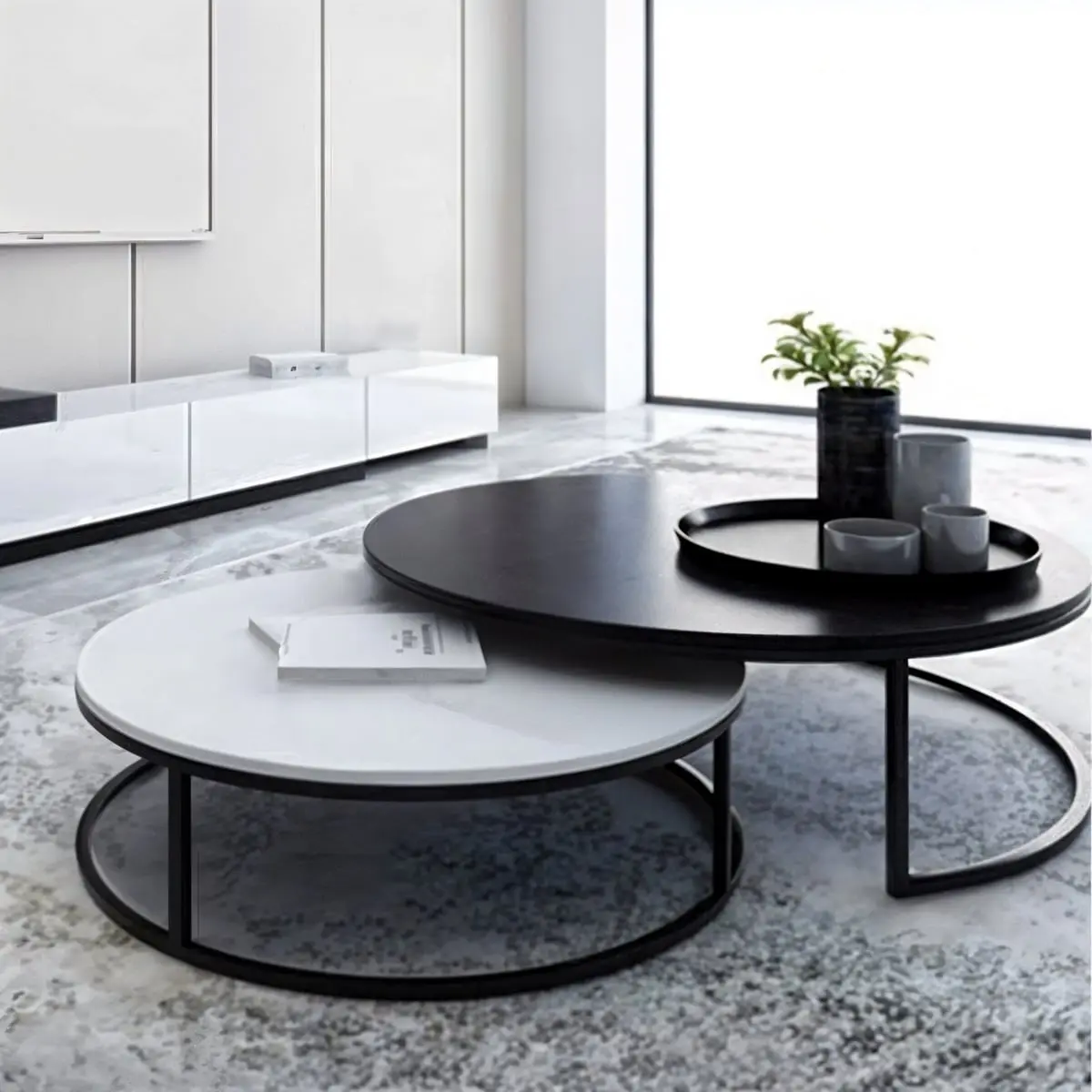 طقم ترابيزات ستيل وام دي اف قطعتين – أسود وأبيض