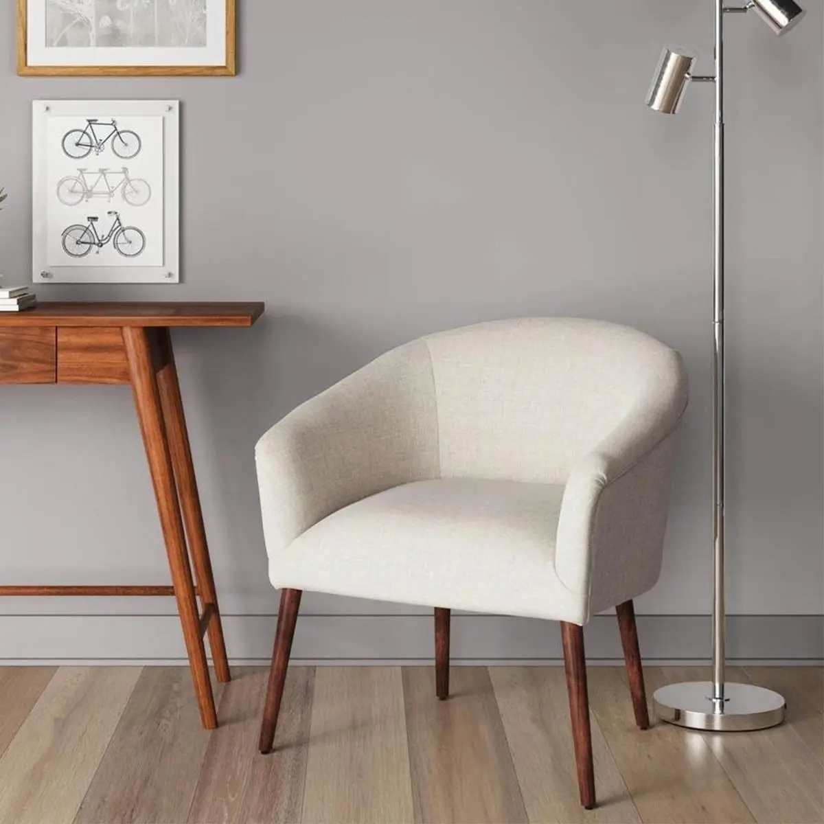 كرسي بذراعين خشب زان و قماش كتان - رمادي
