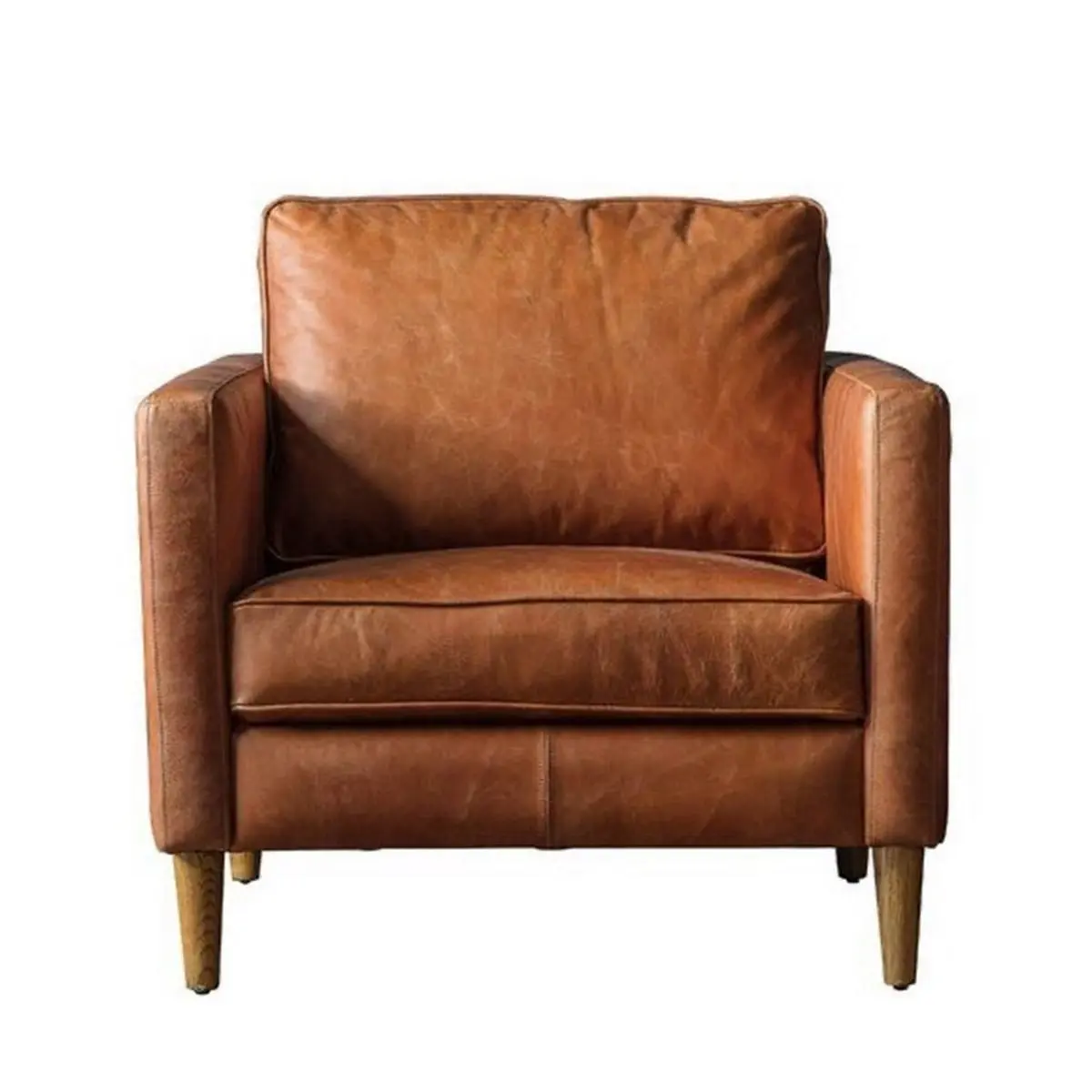كرسي بذراعين خشب زان و جلد – بني
