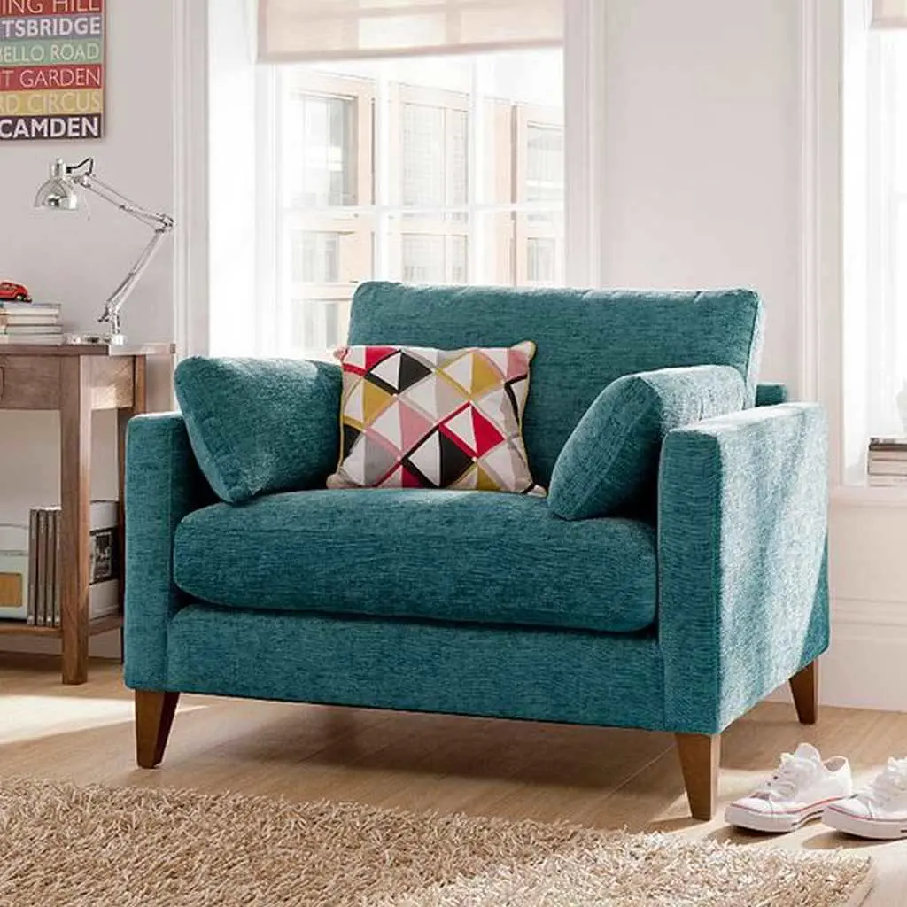 كرسي بذراع خشب زان وكتان – تركواز